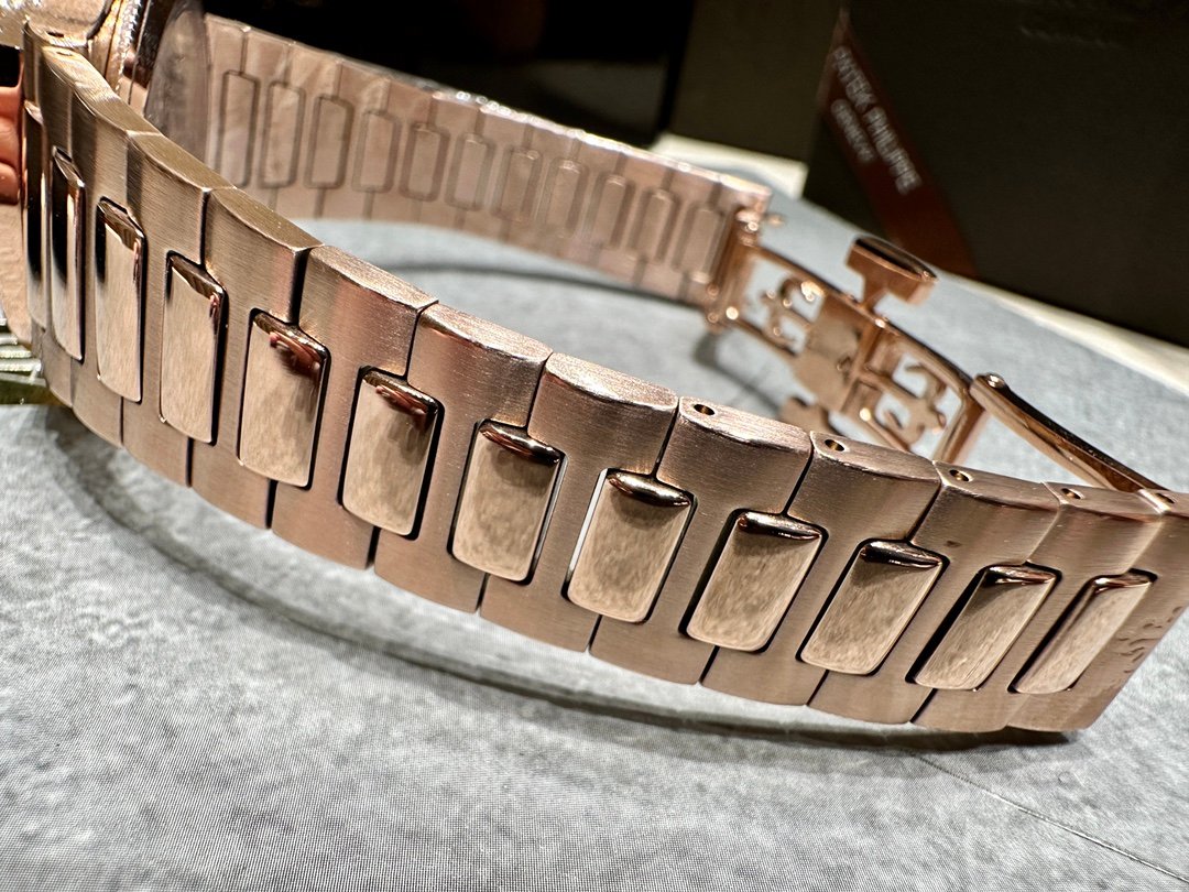 The dial is adorned with the Nautilus ladies’ watch’s characteristic ripple pattern, which ensures legibility and reflects Patek Philippe’s dedication to legibility, even in jewelry watches.