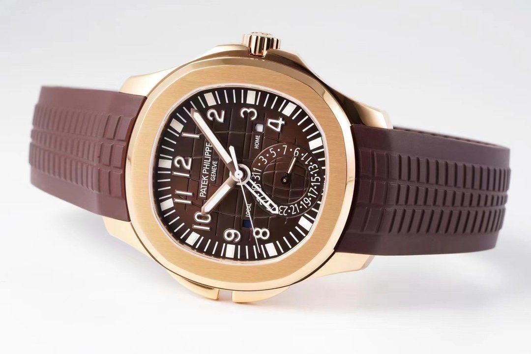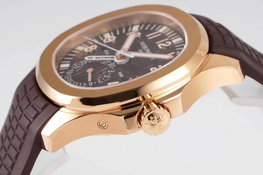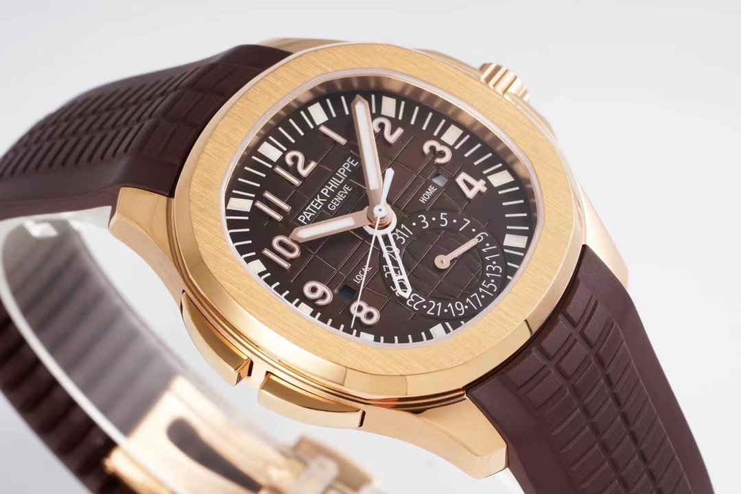 Every choice is a courage to go ahead ZF climbed the peak Successful restoration of the Patek Philippe Aquanaut Series 5164A-001 watch with a modern, international sense of the dual time complication, more in line with the tastes and needs of the younger generation [case] 40.8MM diameter, still using Patek Philippe classic stainless steel material to create a rounded octagonal shell type is just right, the left side of the case of sharks The shark fins on the left side of the case are the buttons that can be used to quickly adjust the skeletonized hour hand in the center, which can be used to indicate the time in the second time zone. Dial] The black embossed dial with three-dimensional metal lettering and luminescent-coated hour markers, the square day/night apertures at 3 and 9 o’clock displaying “HOME” and “LOCAL” respectively, with blue and white colors representing the night and the day, and the pointer-type date disc at 6 o’clock. Date disk at 6 o’clock. The self-winding caliber 324 SC FUS in the Patek Philippe 5164A-001 has been successfully implemented, with a dual time module on a large three-hand base movement. Equipped with a casual Tropical strap, this is a luxury sports watch for the younger generation.