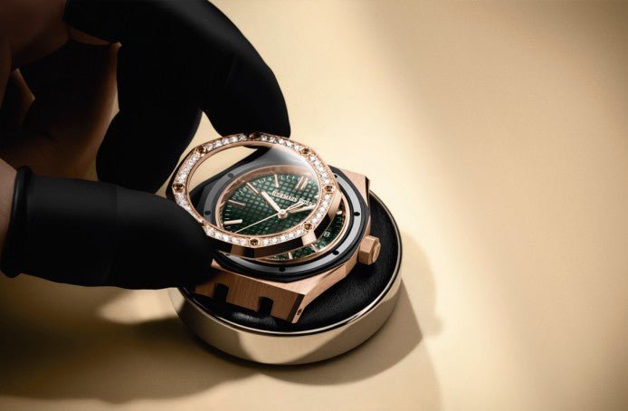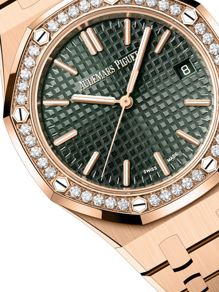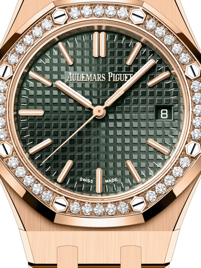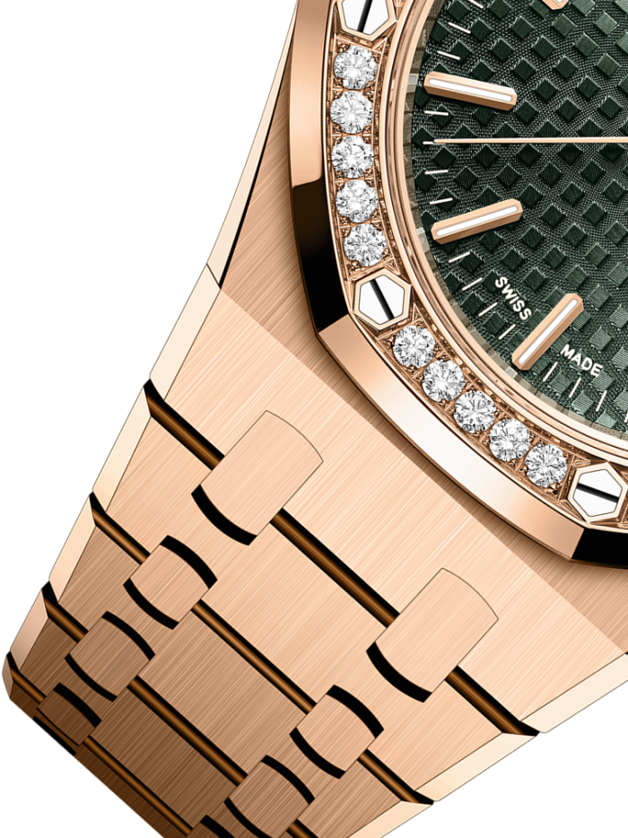 Basic InformationNo.: 15551OR.ZZ.1356OR.06Gender: LadyMovement type: automatic machineMovement diameter: 26.2 mmMovement thickness: 3.9mmNumber of parts: 186Power reserve: 60 hoursExteriorTable diameter: 37mmCase thickness: 8.9mmDial color: khaki greenDial shape: roundStrap color: goldClasp type: Folding claspBottom: Anti-glare treated sapphire crystal glass bottomWeight: NoneWaterproof performance: 50 metersInterlug distance: NoneBuckle spacing: NoneTime scale type: stick time scale. luminous