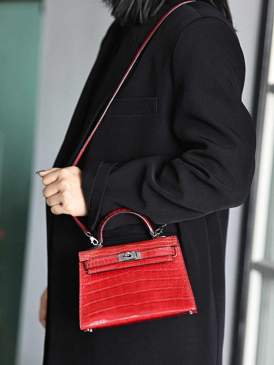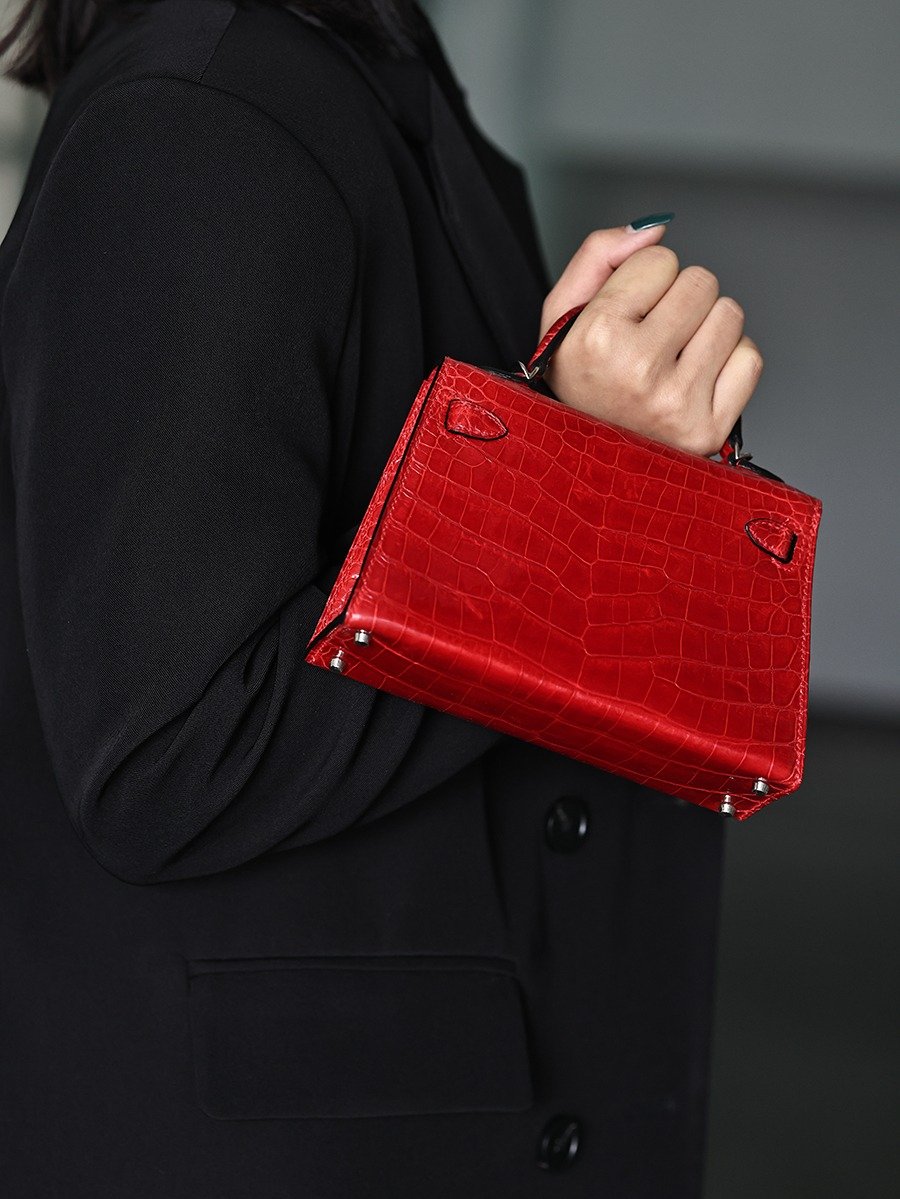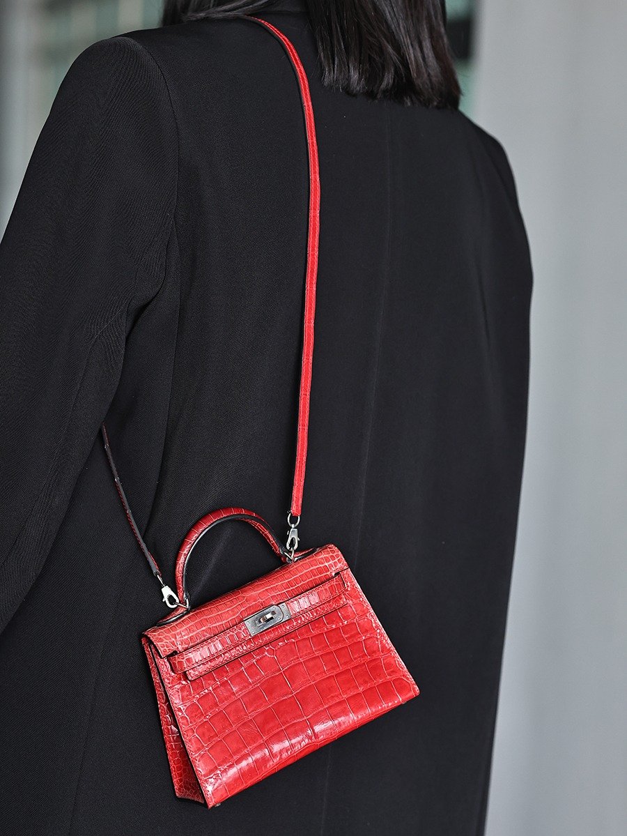 Shiny crocodile leather Ferrari red mini Kelly 2
