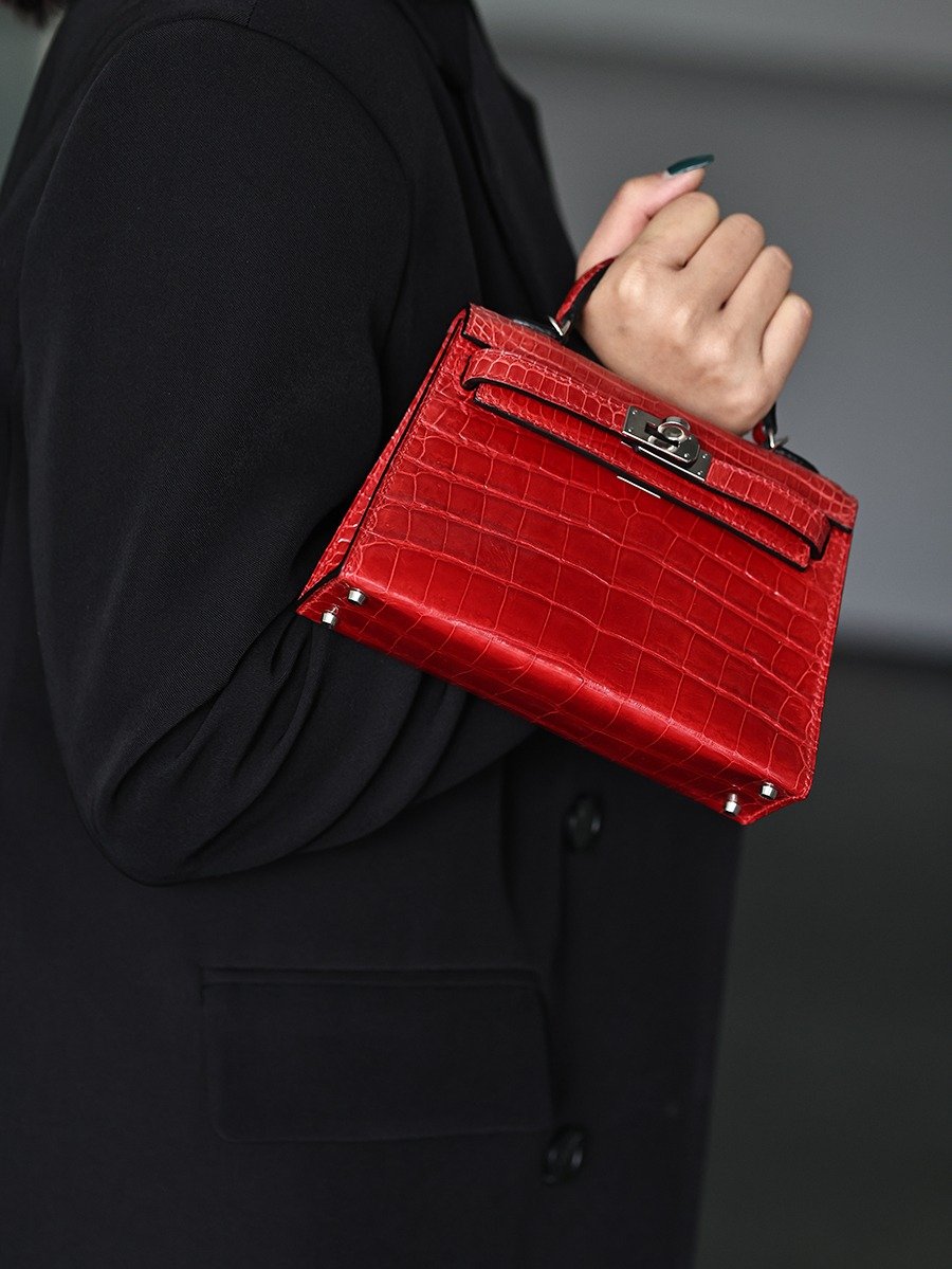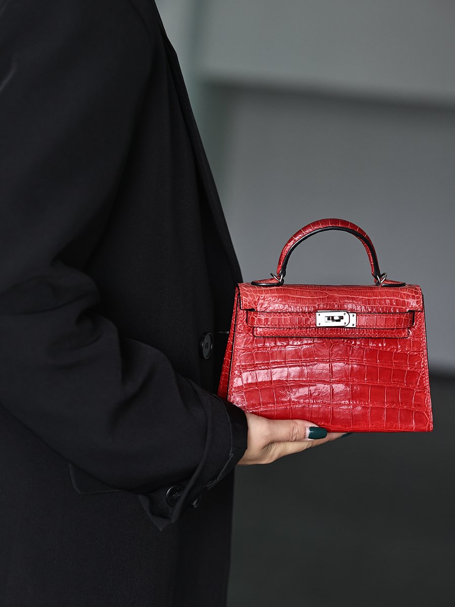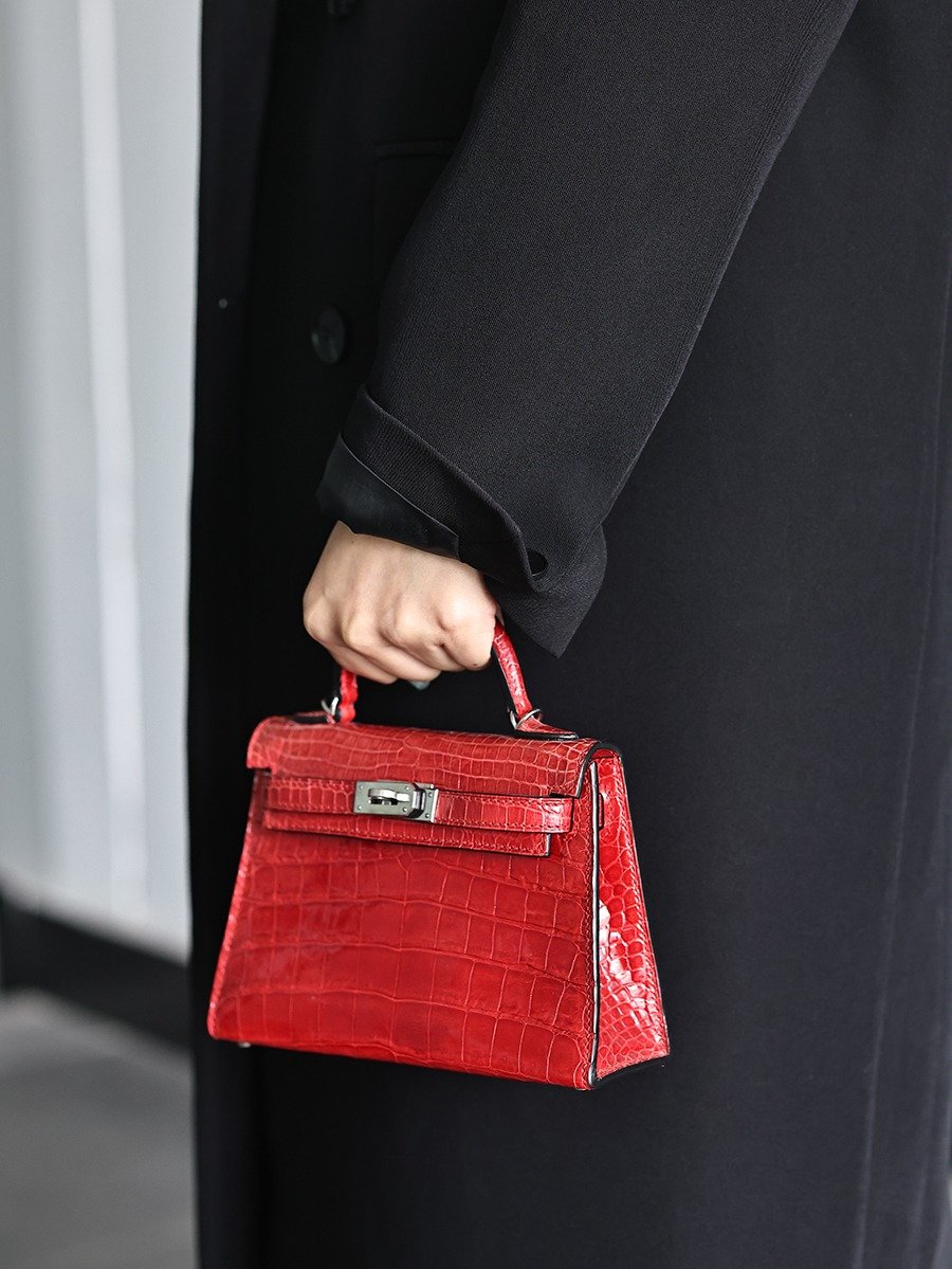Shiny crocodile leather Ferrari red mini Kelly 2
