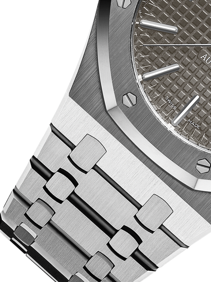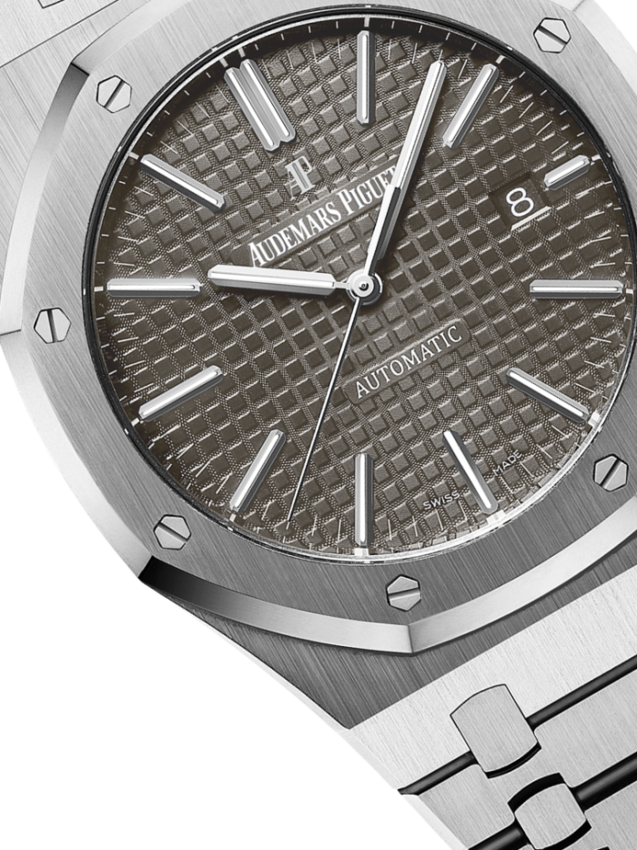 Basic InformationNo.: 15400ST.OO.1220ST.04Gender: MenMovement type: automatic machineMovement diameter: 26.6 mmMovement thickness: 4.26 mmPower reserve: 41 hoursExteriorTable diameter: 41mmCase thickness: 9.8mmDial color: gray rutheniumDial shape: roundStrap color: silverBuckle type: folding buckleBottom: see-through back. anti-glare treated sapphire crystalWeight: NoneWaterproof performance: 50 metersInterlug distance: NoneBuckle spacing: NoneTime scale type: stick time scale