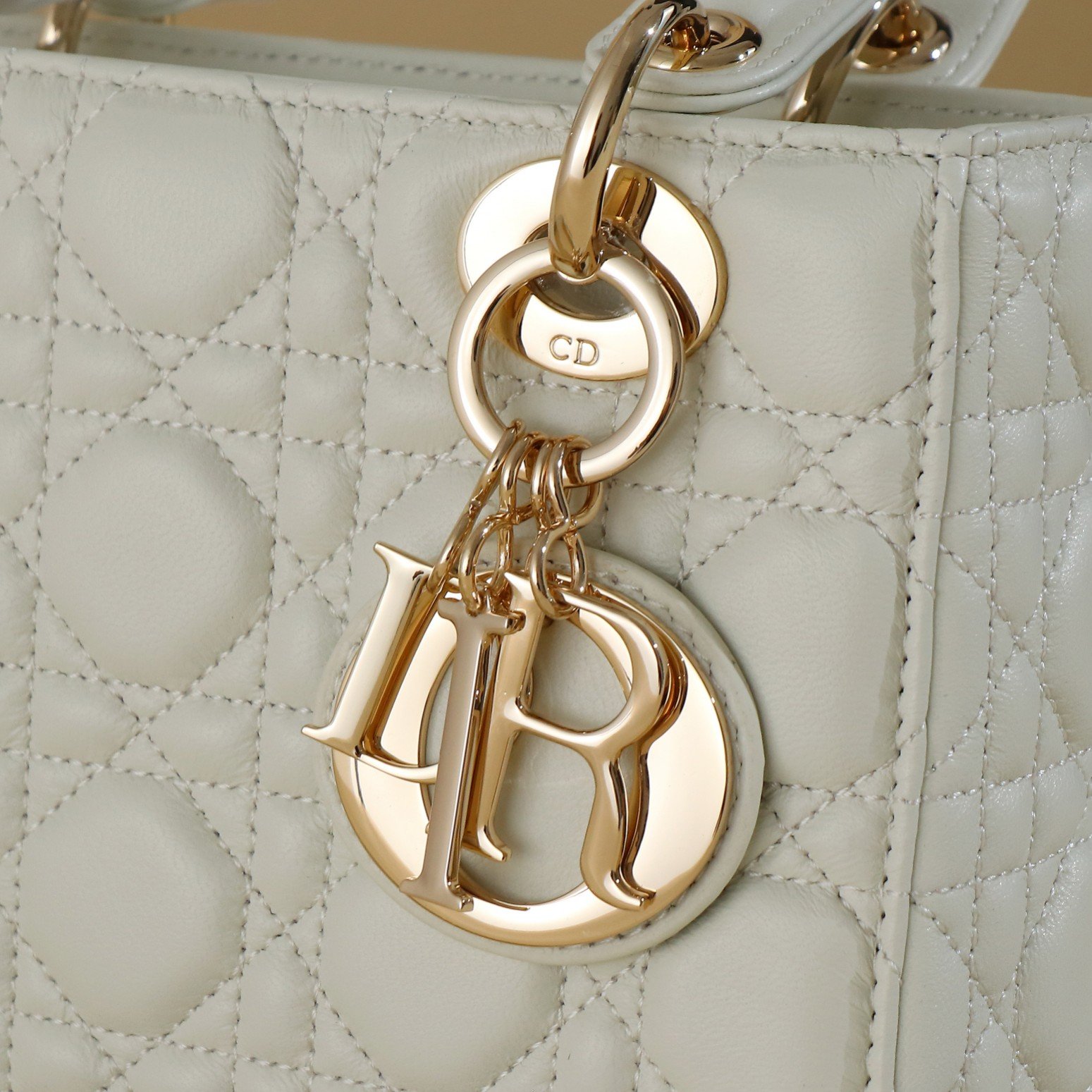 The light gold-tone metal d.i.o.r. charm adds a touch of elegance. The small size is chic, with a shoulder strap that can be personalized with a medallion, and can be worn hand-carried or cross-body.