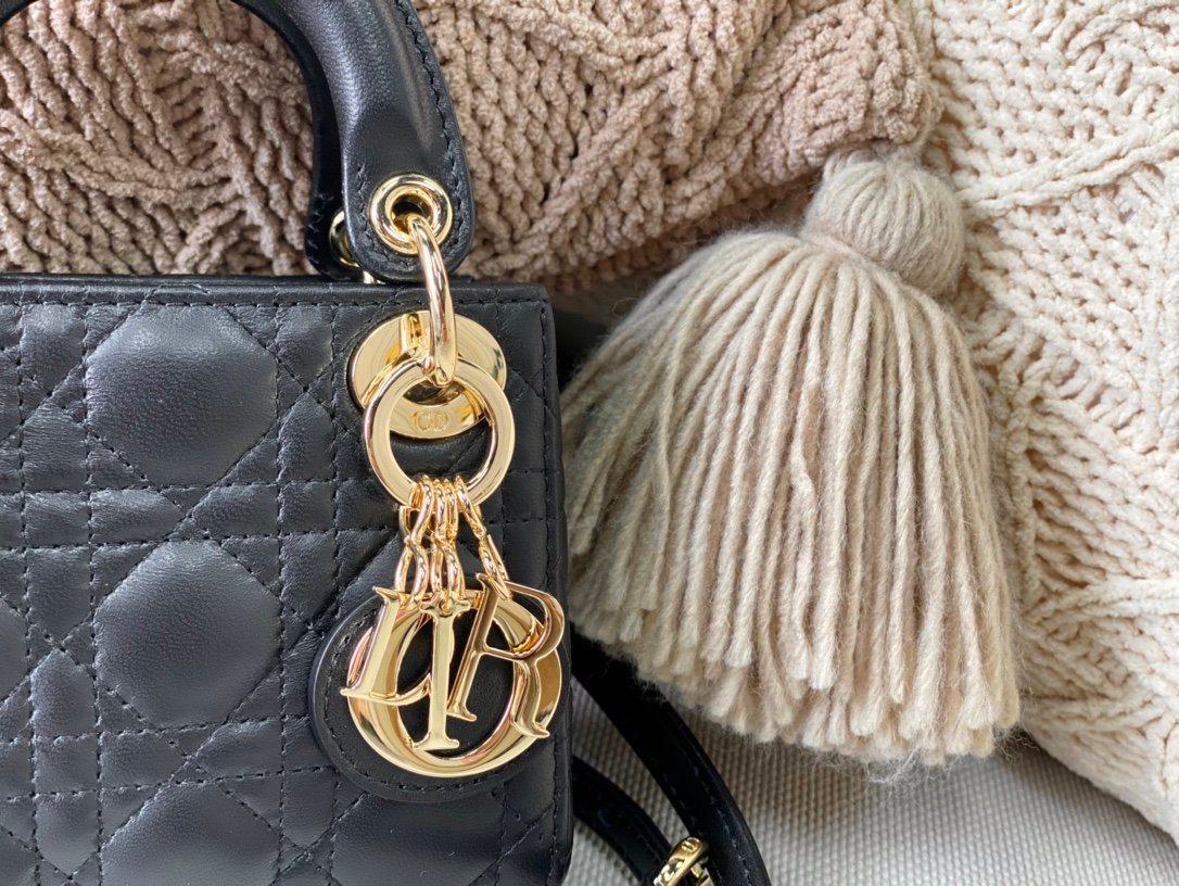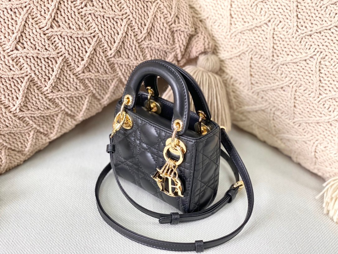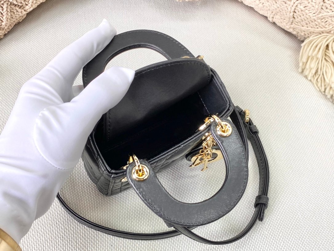 Super Mini LadyDior Handbag Lambskin Detail Color: Black