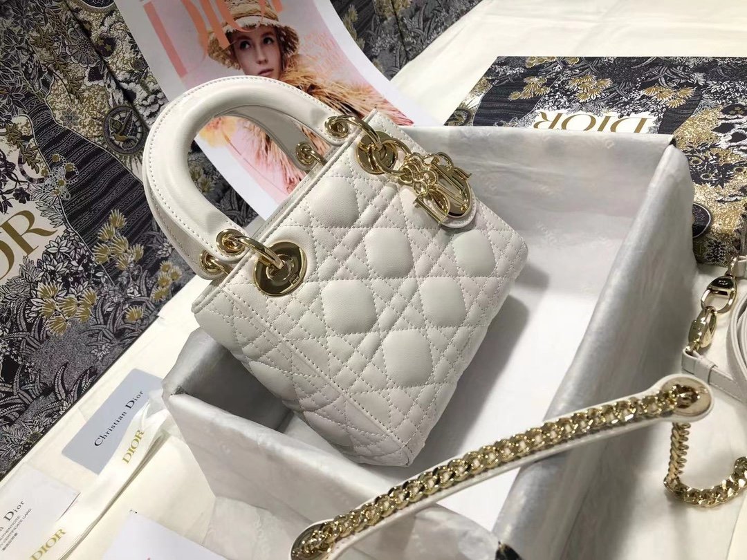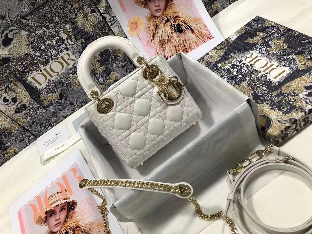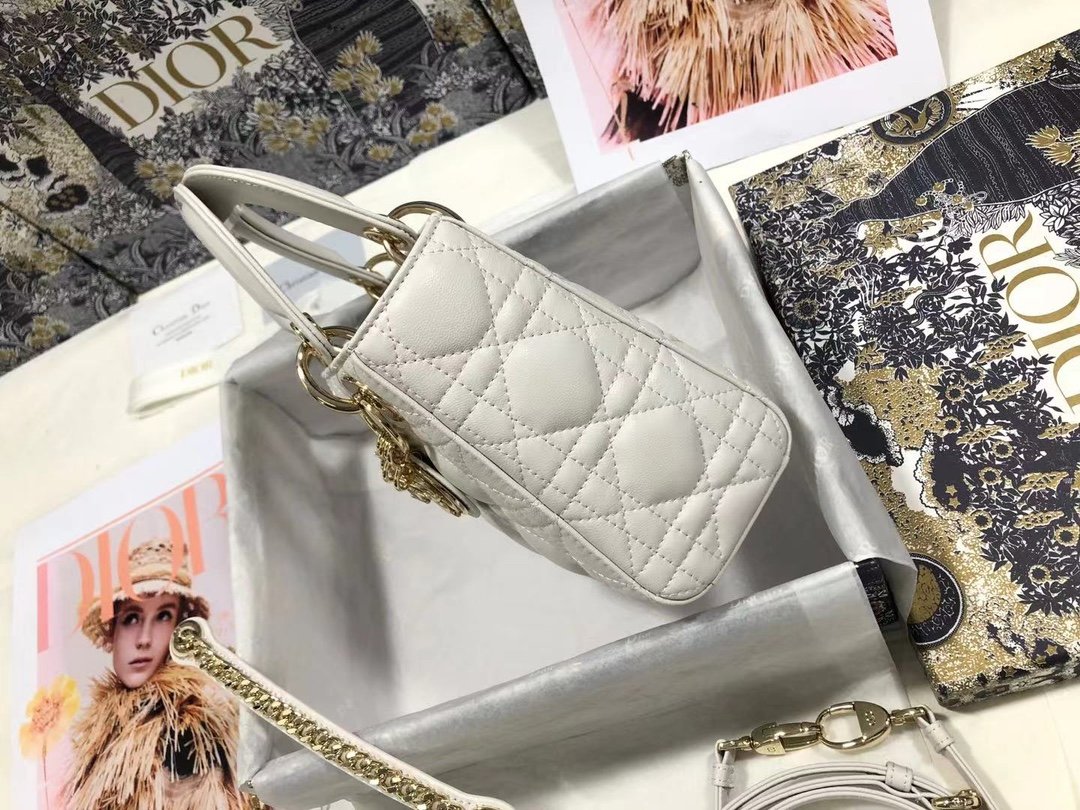 The Lady Dior three-compartment flap classic Lady Dior bag embodies Dior’s profound insight into elegance and beauty. Carefully crafted, the eye-catching quilting details are created with rattan pattern stitching, and the elegant and classic design is timeless. The metal "D.I.O.R." pendant adds a touch of agility to the exquisite silhouette. The mini style, with a detachable chain shoulder strap, can be carried by hand, on the shoulder or crossbody, making it an ideal companion for evening wear. The detachable chain shoulder strap can be matched with other embroidered shoulder straps as you like. Size: 17×15×7cm