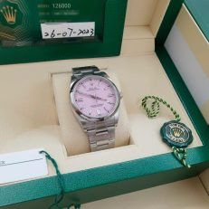 The watch is unworn and comes complete with full set of original accessories. such as watch box. warranty card dated recently. booklets and manuals.