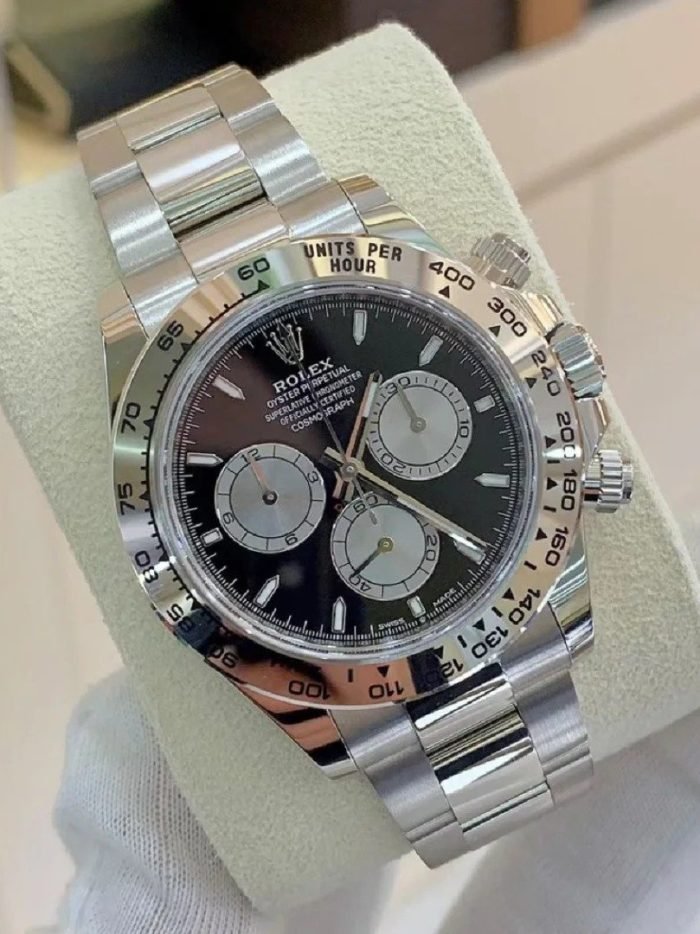 Be the first to review “The Oyster Perpetual Cosmograph Daytona in 18 ct white gold with a glossy black and stainless steel dial and Oyster bracelet with an engraved tachymeter on an 18 ct white gold bezel. -m126509-0001 40mm”