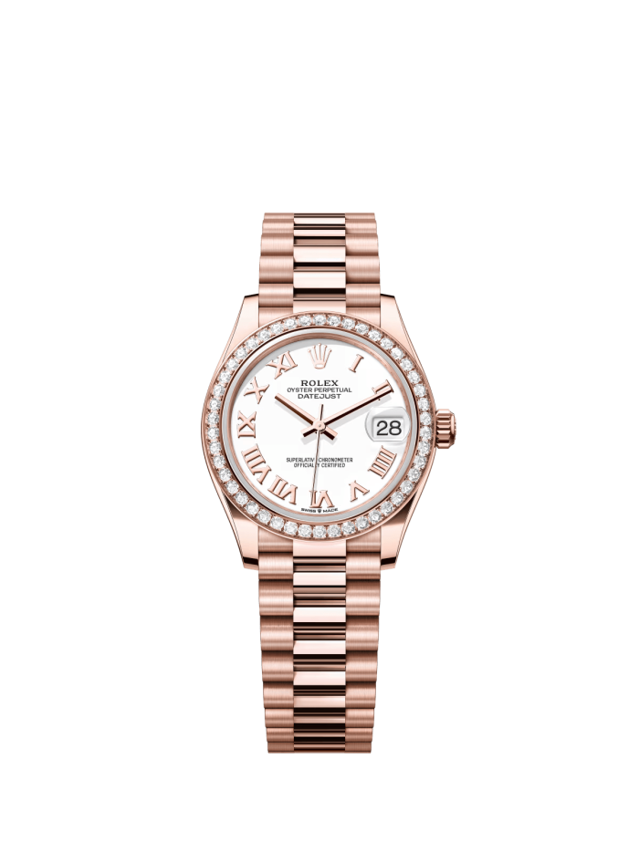The Oyster Perpetual Datejust 31 in 18-carat Everose gold with a white dial and President bracelet. -m278285rbr-0008