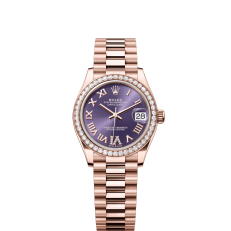 The Oyster Perpetual Datejust 31 in 18 ct Everose gold with a diamond-set eggplant purple dial and a President bracelet. -m278285rbr-0023