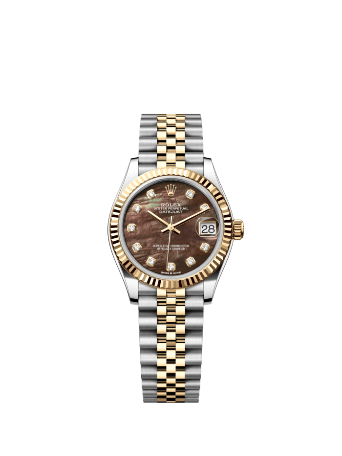 The Oyster Perpetual Datejust 31 in yellow gold and Oystersteel with a diamond-set black mother-of-pearl dial and a Jubilee bracelet. -m278273-0024