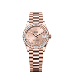 The Oyster Perpetual Datejust 31 is available in 18 ct Everose gold with a rose gold-tone dial and a President bracelet. -m278285rbr-0029
