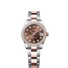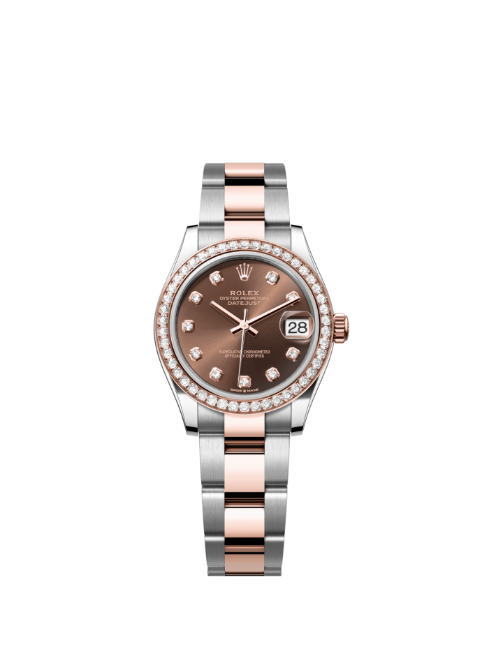 The Oyster Perpetual Datejust 31 is available in Everose gold and Oystersteel with a chocolate-coloured diamond-set dial and an Oyster bracelet. -m278381rbr-0027