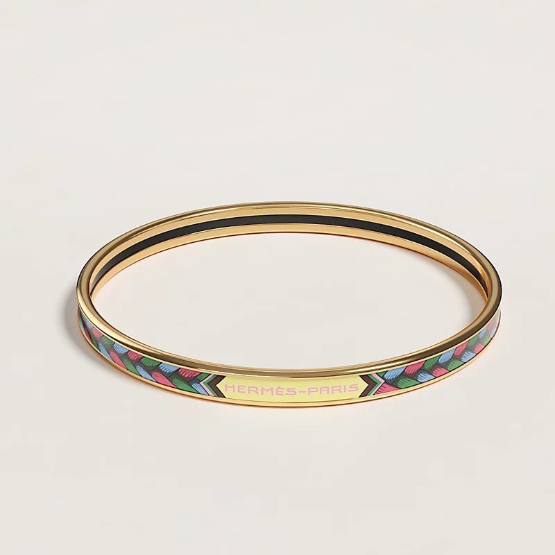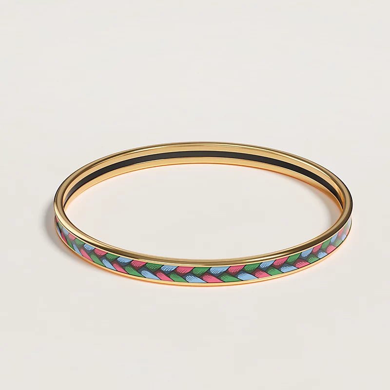 Extra narrow bracelet in printed enamel with the 鈥淭resse de Coeur鈥?motif.Daiske Nomura鈥檚 designs are equestrian and feminine. These ceremonial horses are decorated with bells. ribbons and harnesses with exquisite embroidery. The creations are based on the image of horses with braids and ribbon details.Narrow bracelets are perfect for stacking!