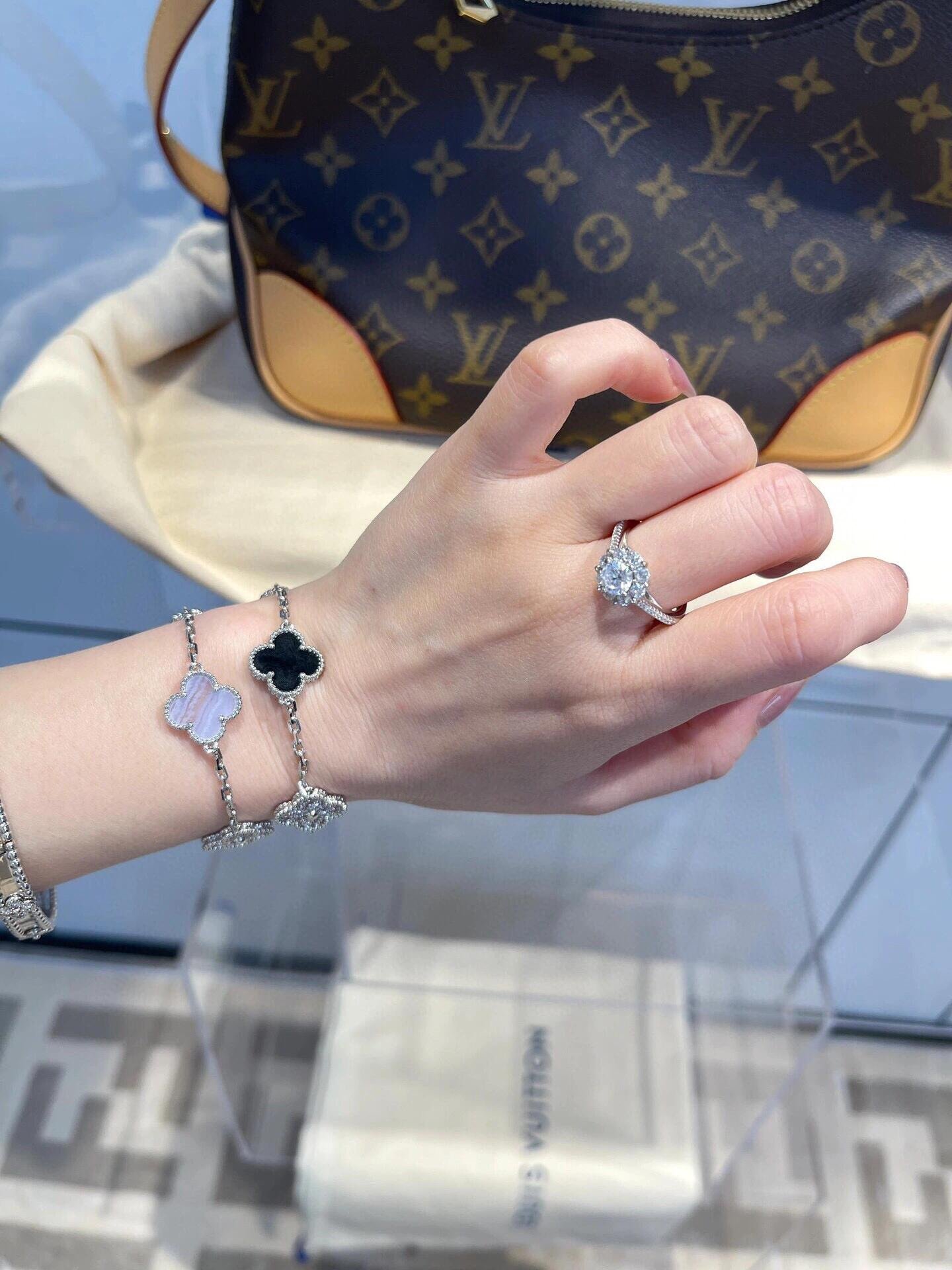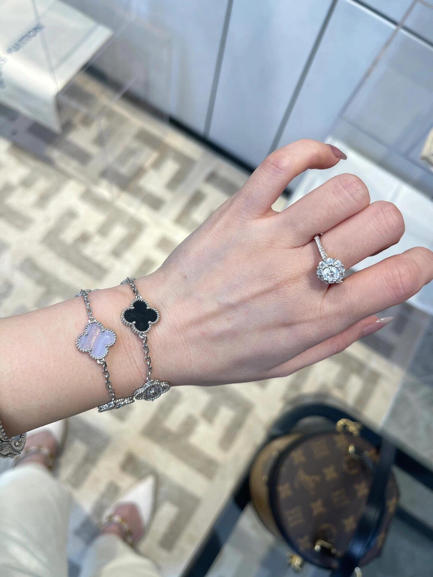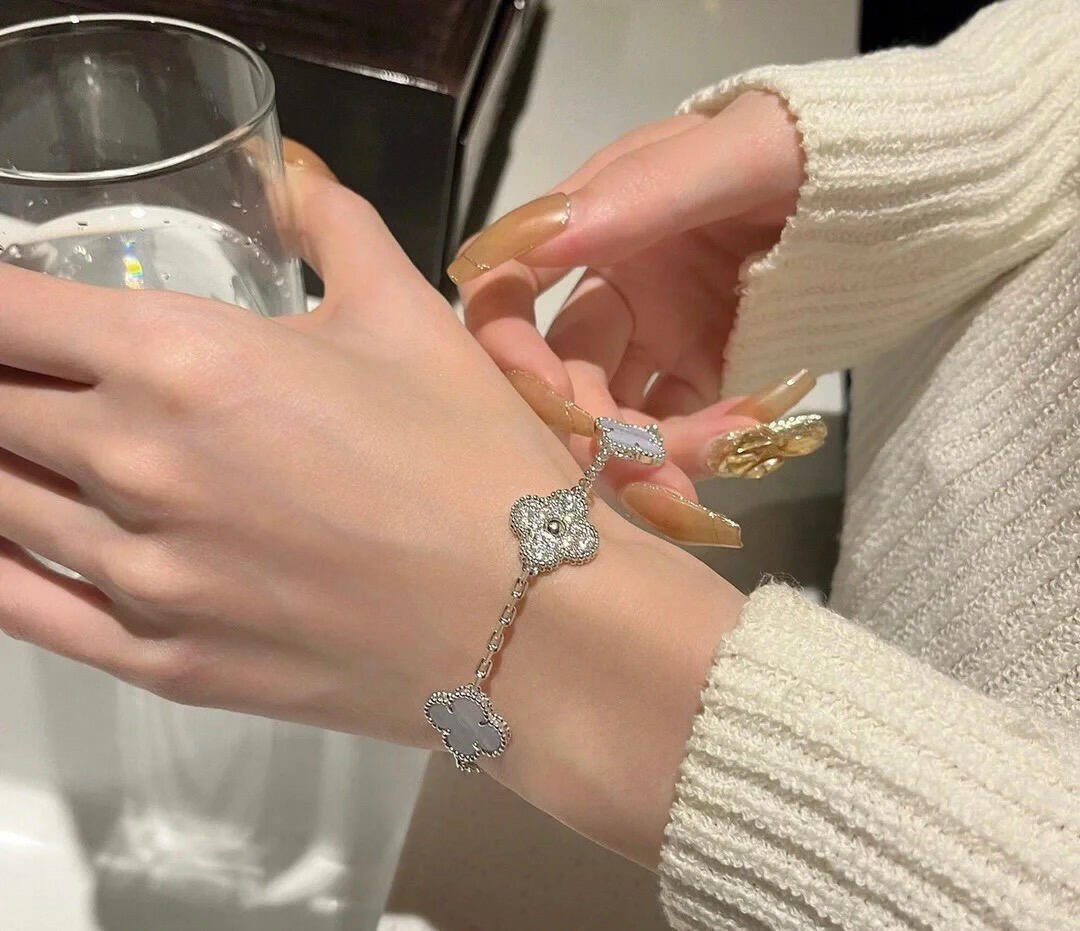 VCA Five-flower bracelet, panda bracelet, purple chalcedony kaleidoscope bracelet wearing effect diagram